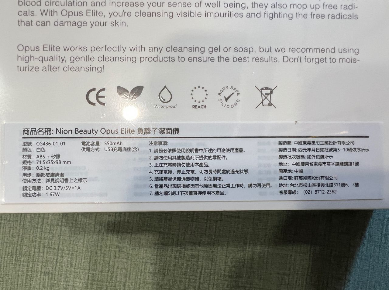 全新Nion Beauty-Opus Elite 雙效負離子按摩潔面儀/洗臉機(白色)