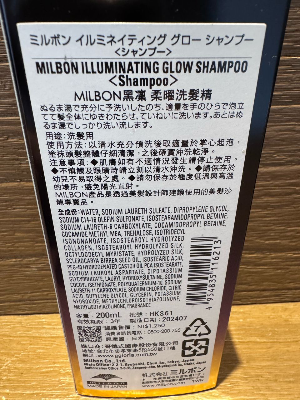 MILBON 黑凜柔曜洗髮精/200ml/二手/