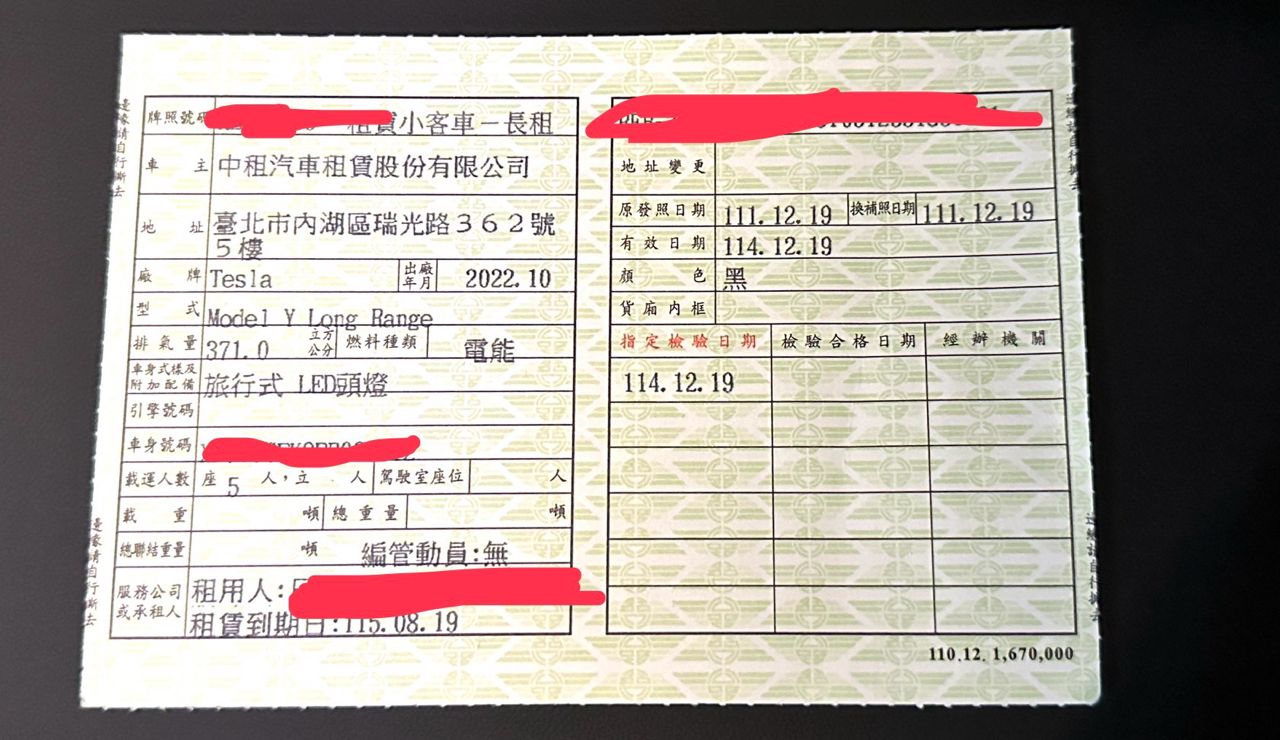 車款型式/排氣量:MODEL Y LONG RANGE