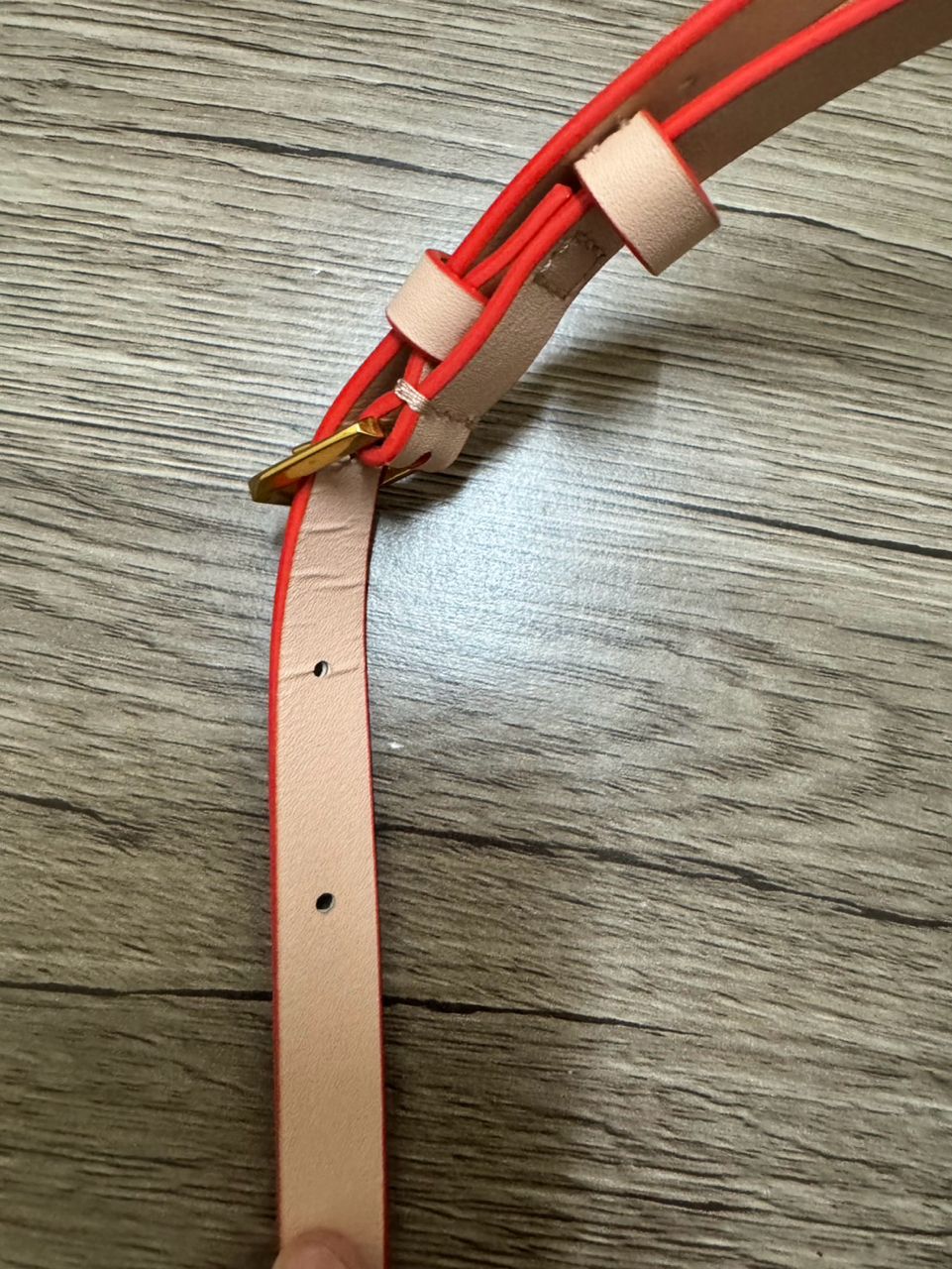 a.二手:有使用痕跡、底部金屬有微刮痕、背帶有部分皮革浮浮的(如圖)(包況反