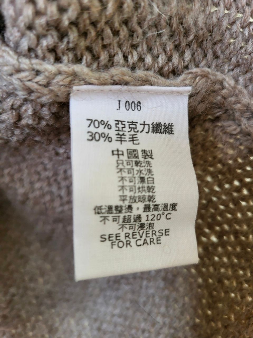 5.NET保暖針織咖啡色長版外套,NET青少年尺碼L,材質羊毛30%,有些縮水,袖子約為8