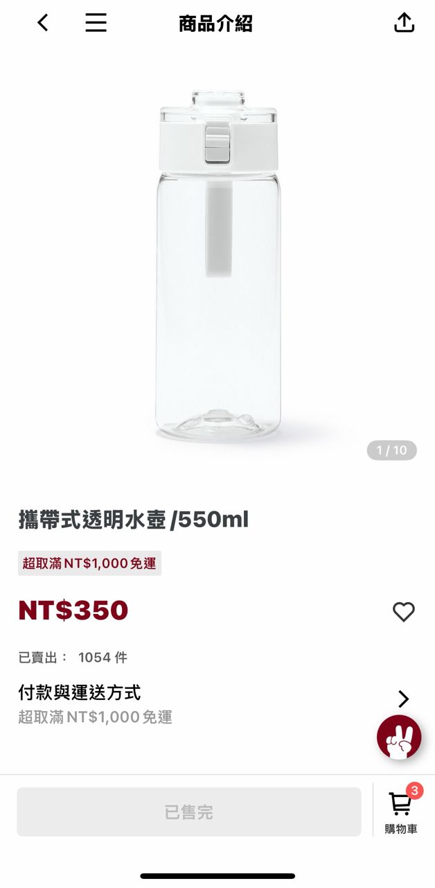 MUJI攜帶式透明水壺/550ml