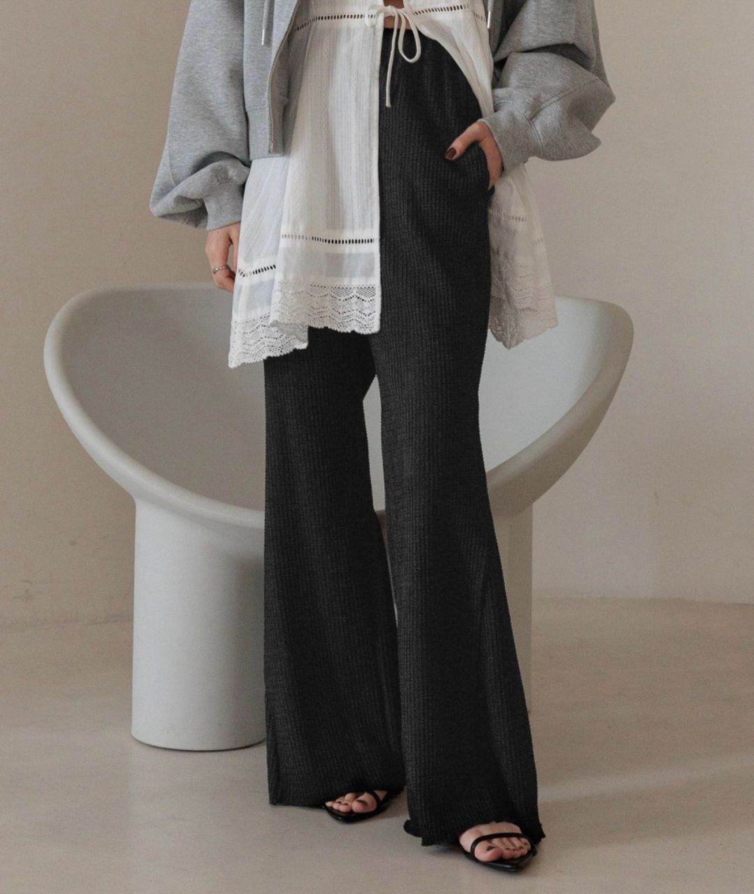 Lowrys Farm黑色立體織紋喇叭長褲