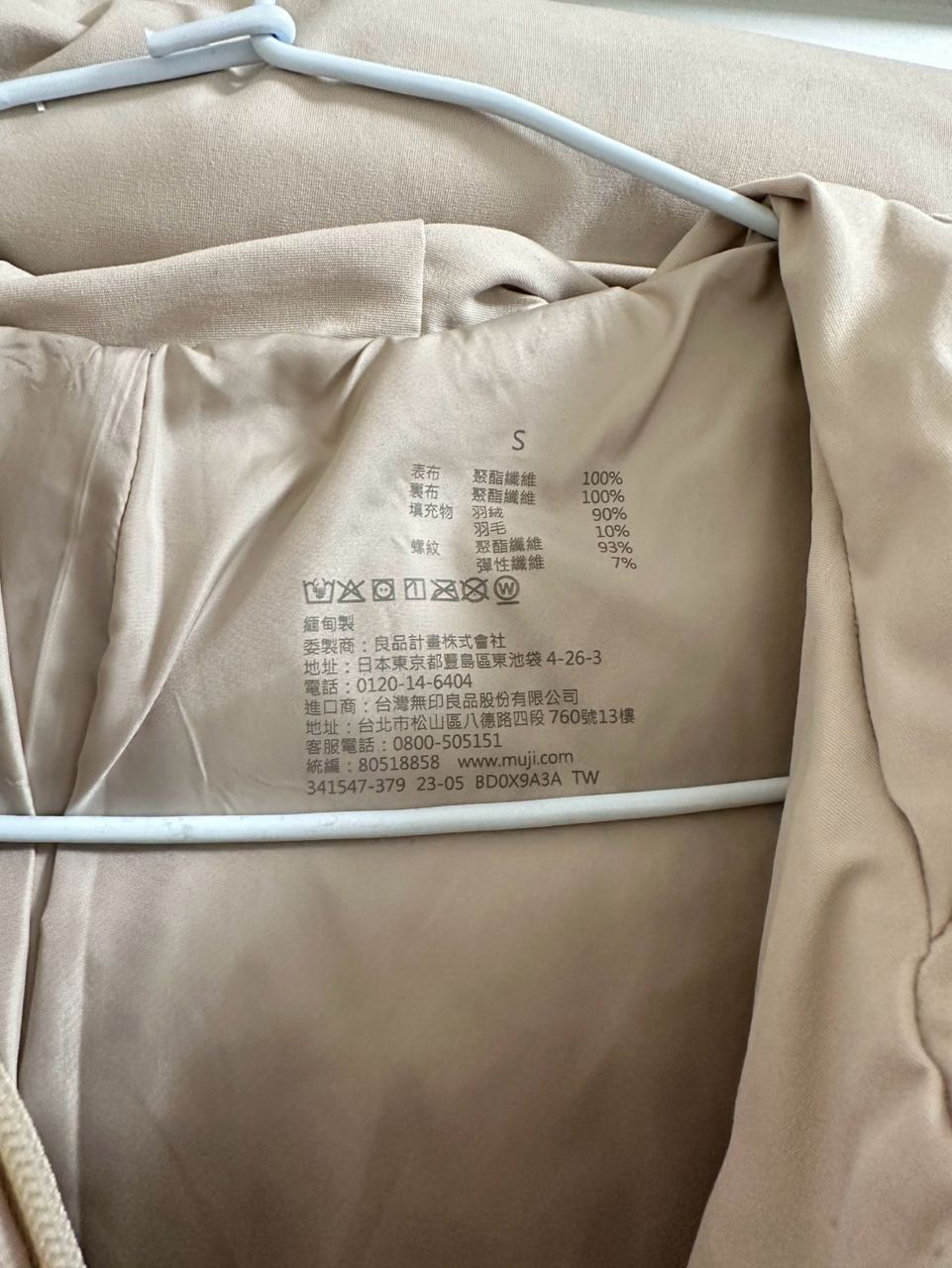 a. 無印良品Muji 米白色長版羽絨外套大衣 女生s號