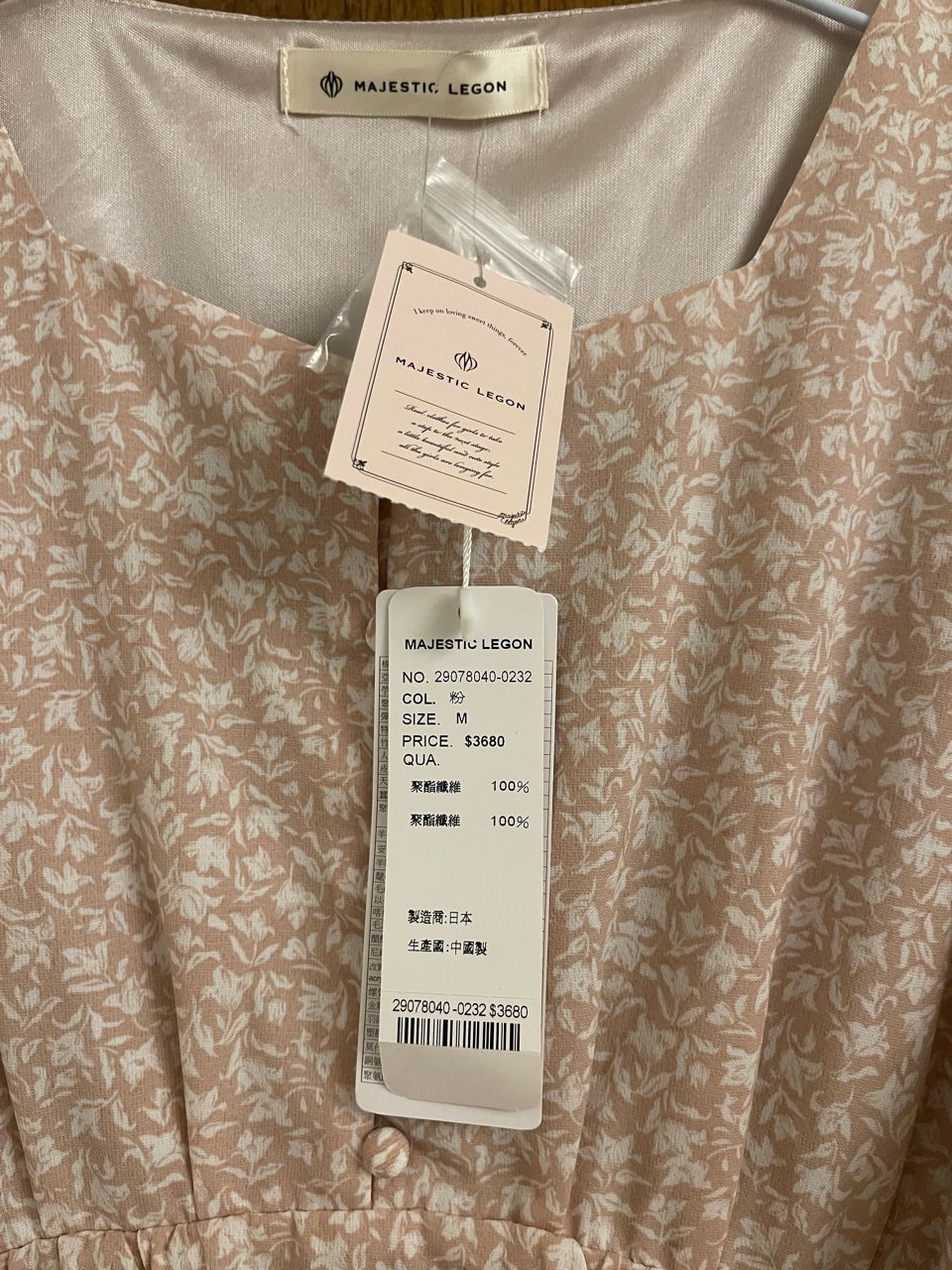 全新/尺寸M/粉色/夢時代百貨購入/原價$3680