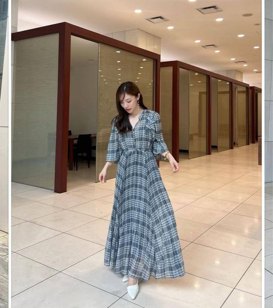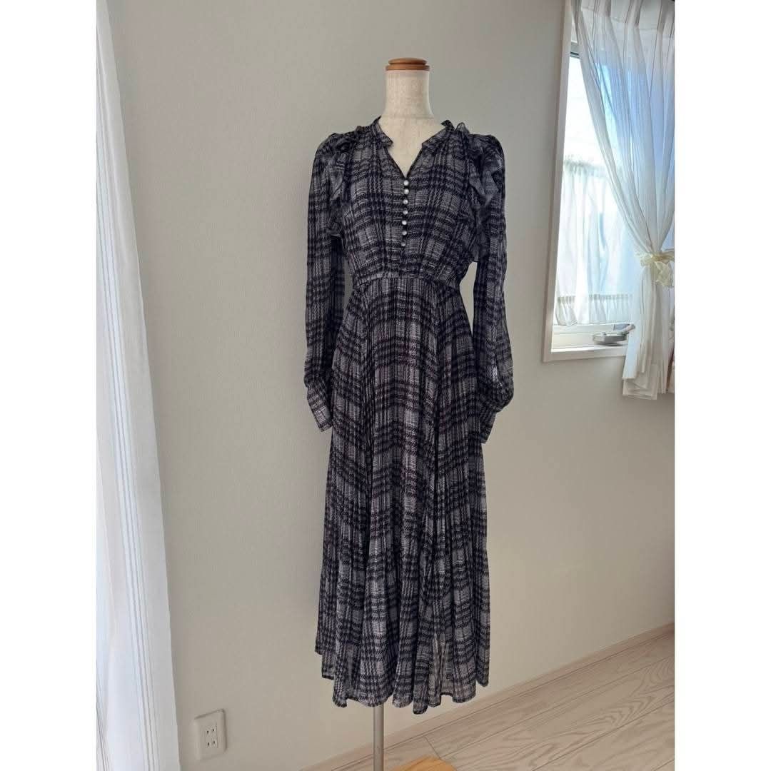 b. 荷葉設計格紋雪紡洋裝