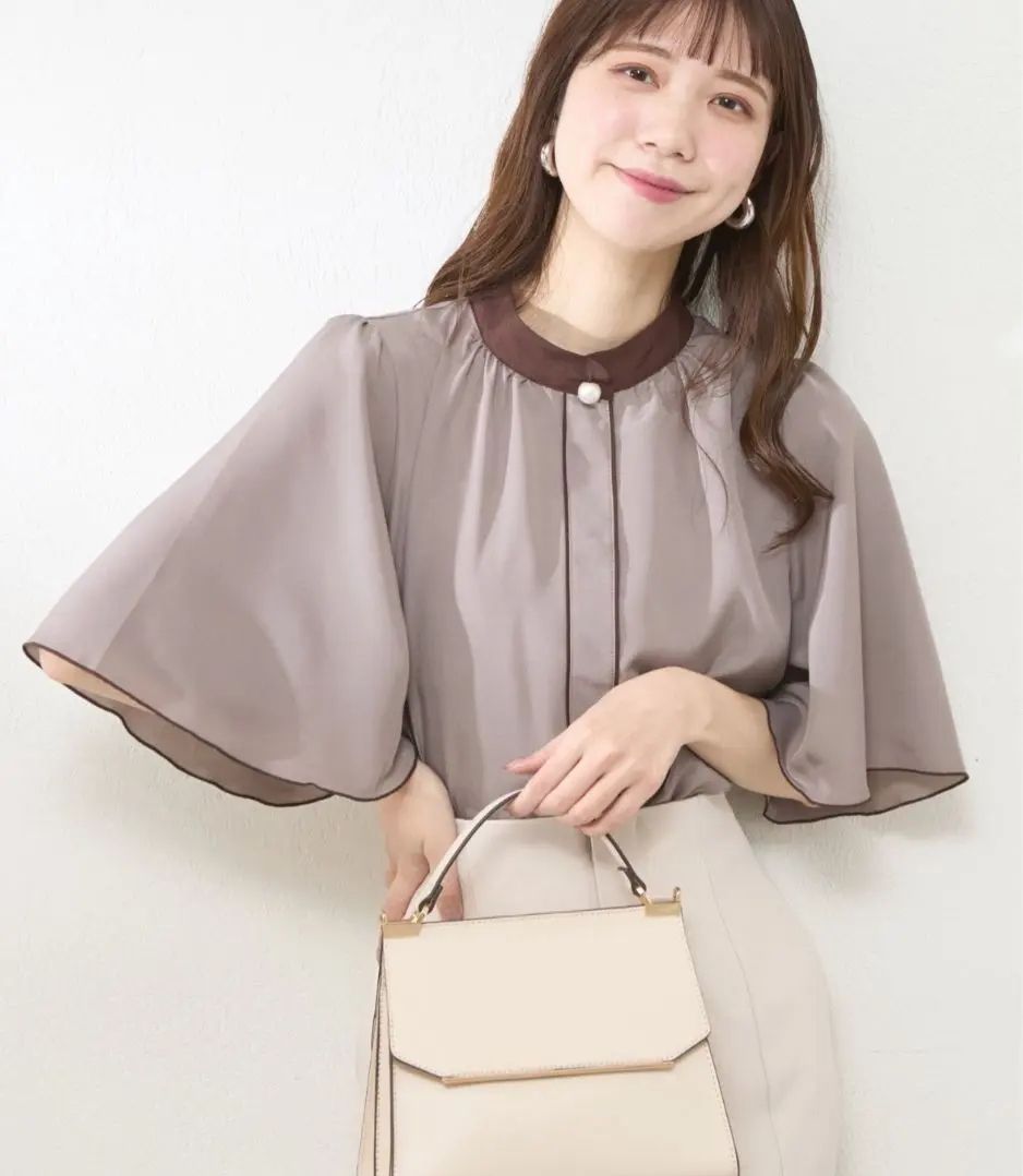 b. natural couture 珍珠釦撞色傘襬五分袖襯衫