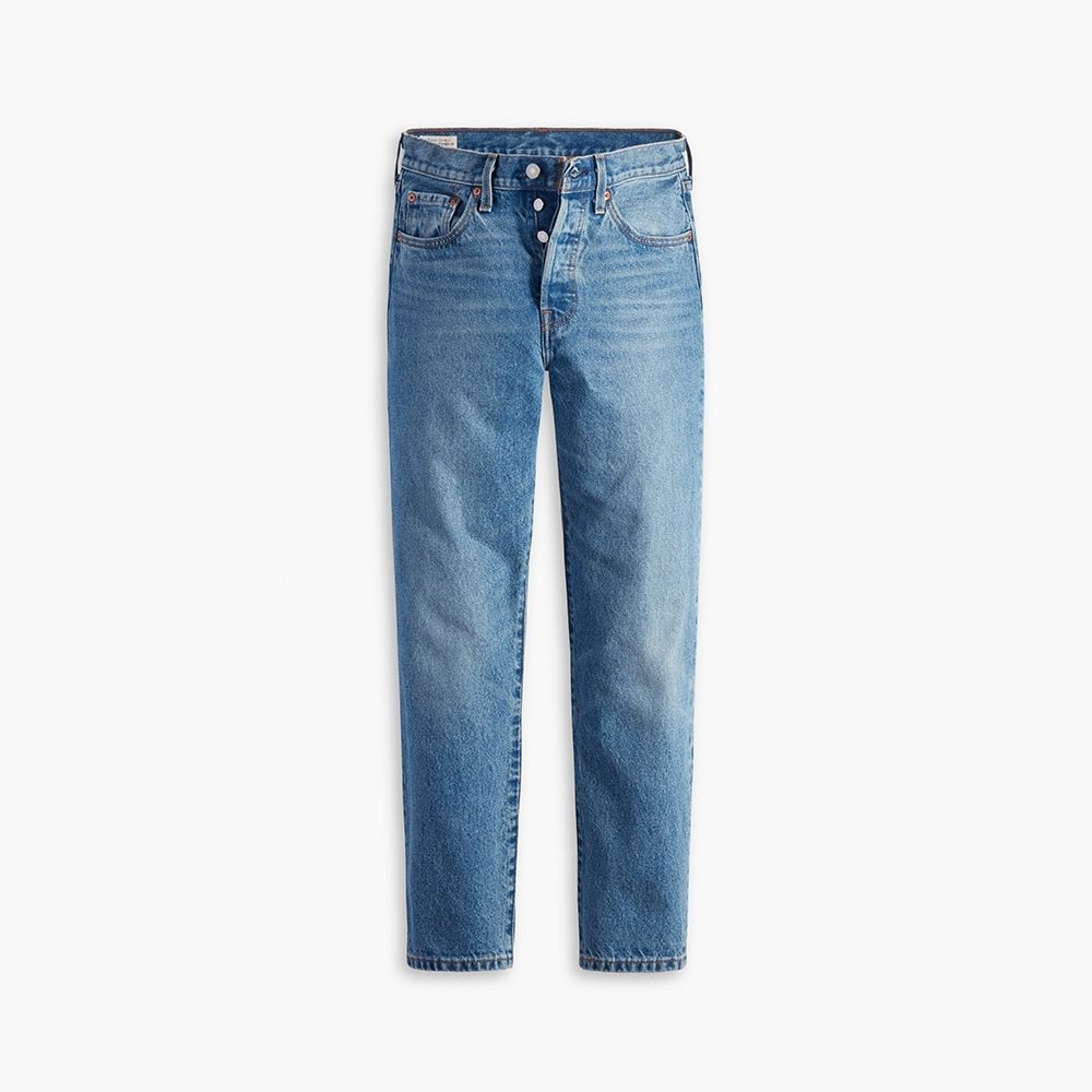 a.Levis 女款 501高腰合身排釦直筒牛仔長褲/ 精工中藍染石洗/27腰28褲長