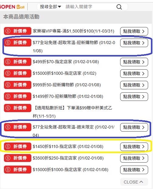 (折價券使用期限即日至01/08-數量有限領完為止)
