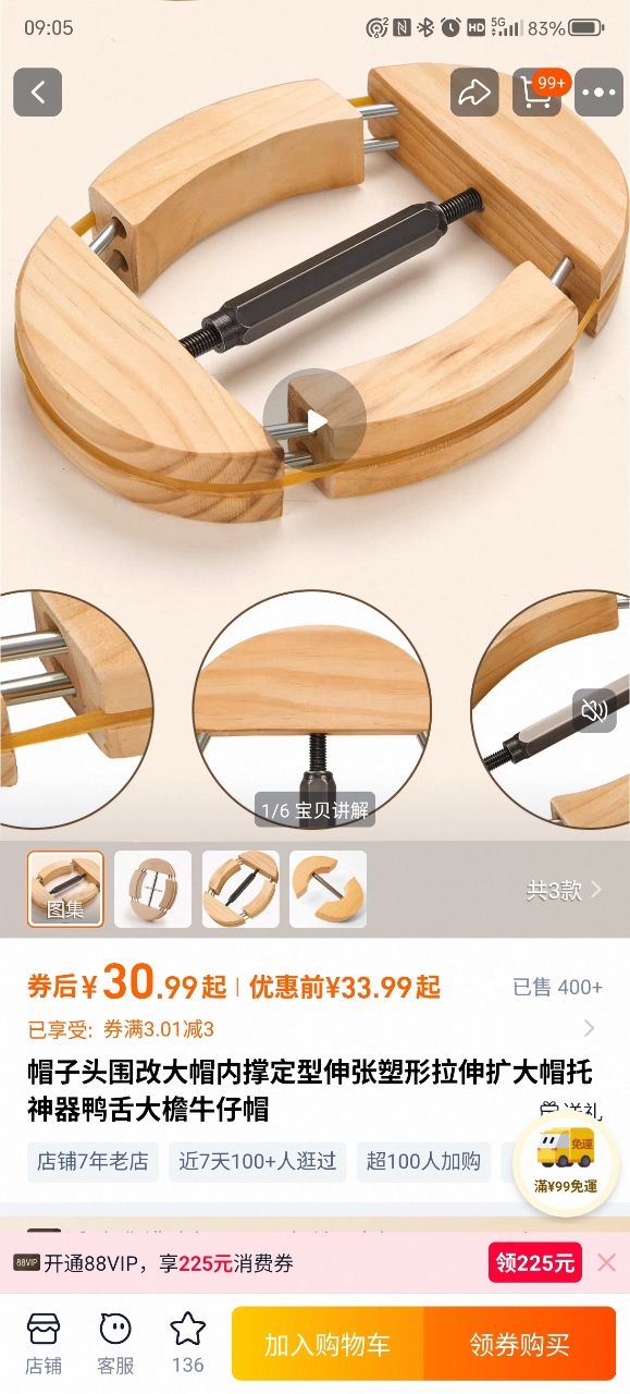 後來自己在淘寶上找到這個木頭製的撐帽器,實驗性質的買回來試
