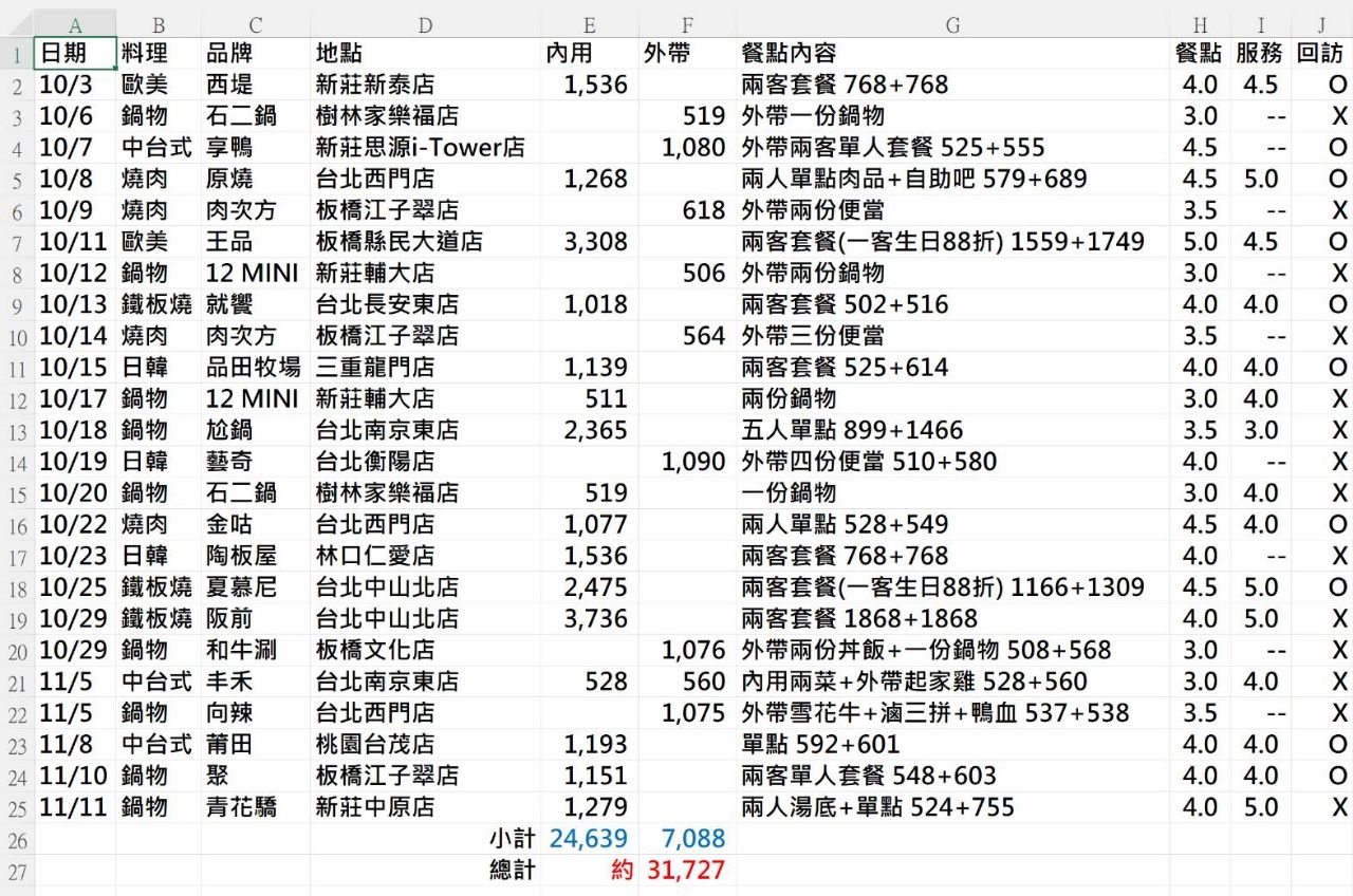 最後兩人餐費大約31727