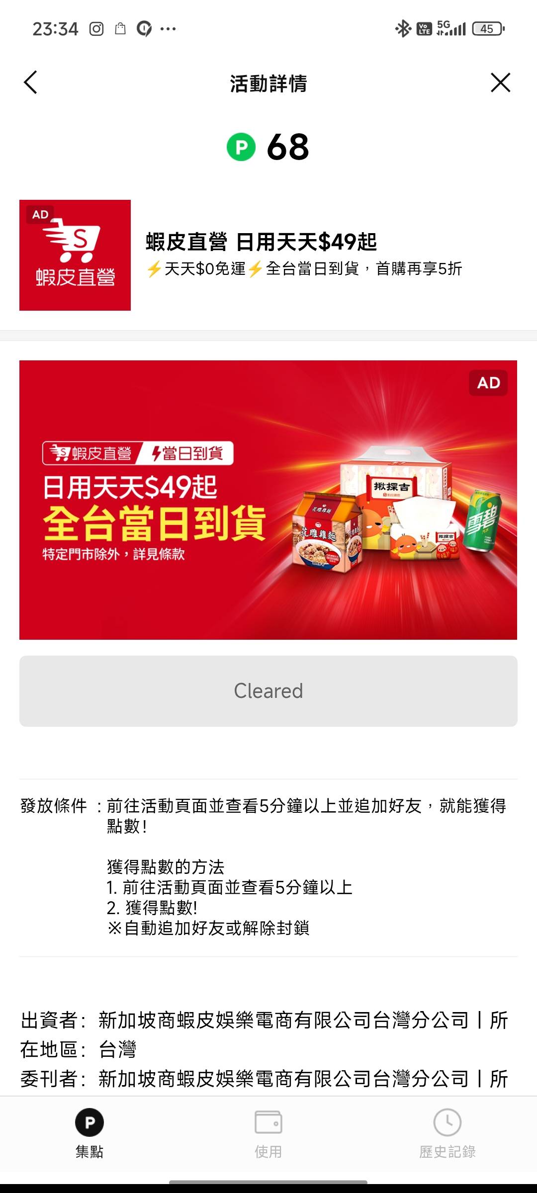 蝦皮 點進去就好,五分鐘後入帳