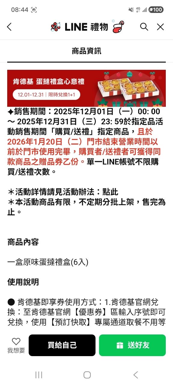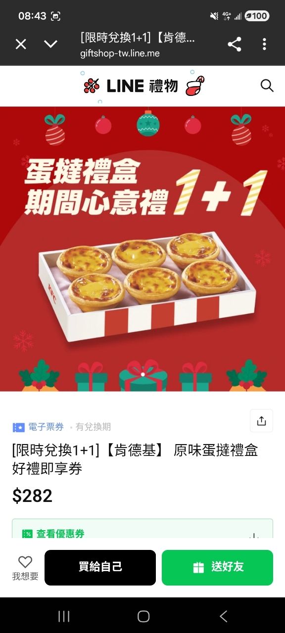 [情報]LINE禮物 肯德基蛋撻1+1