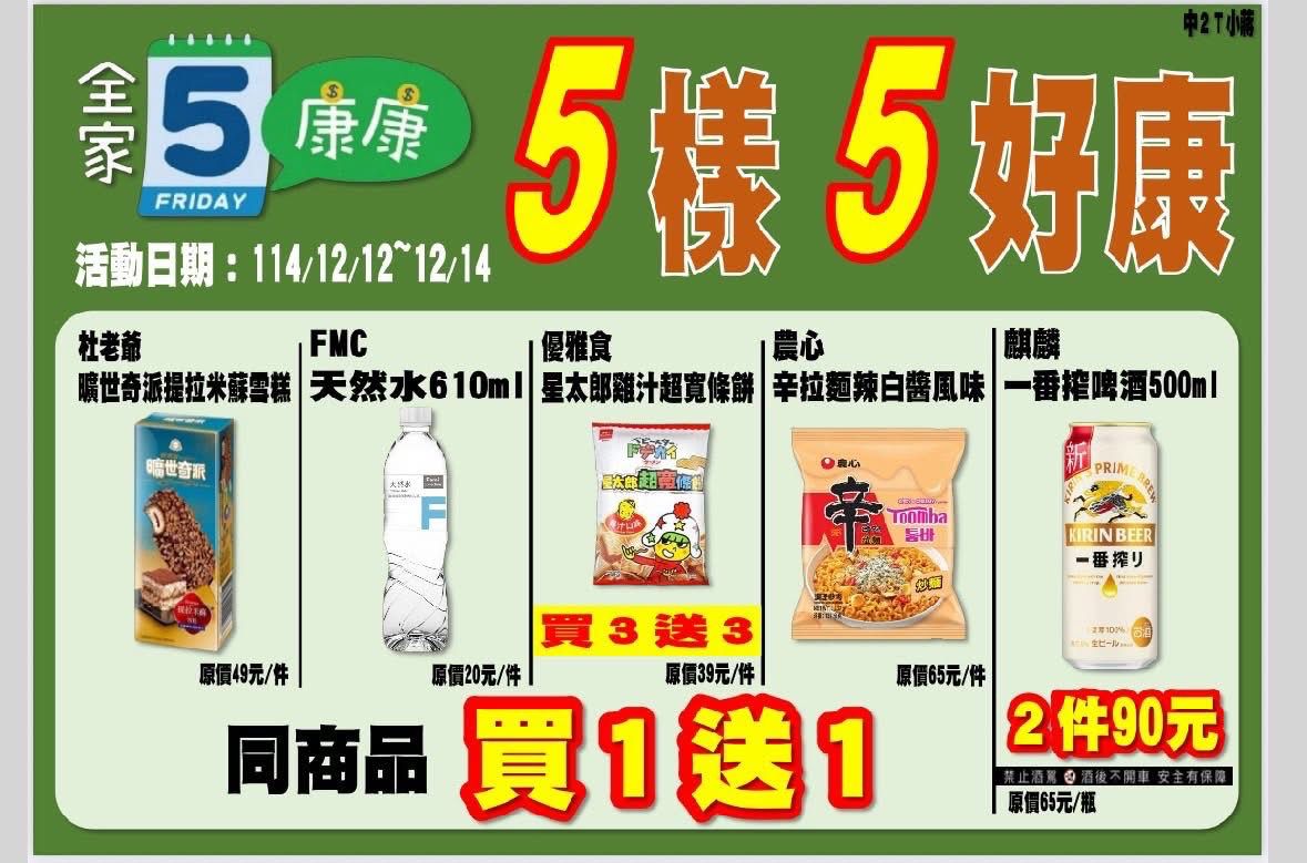 [情報] 全家會員獨享&康康五 12/10~12/14