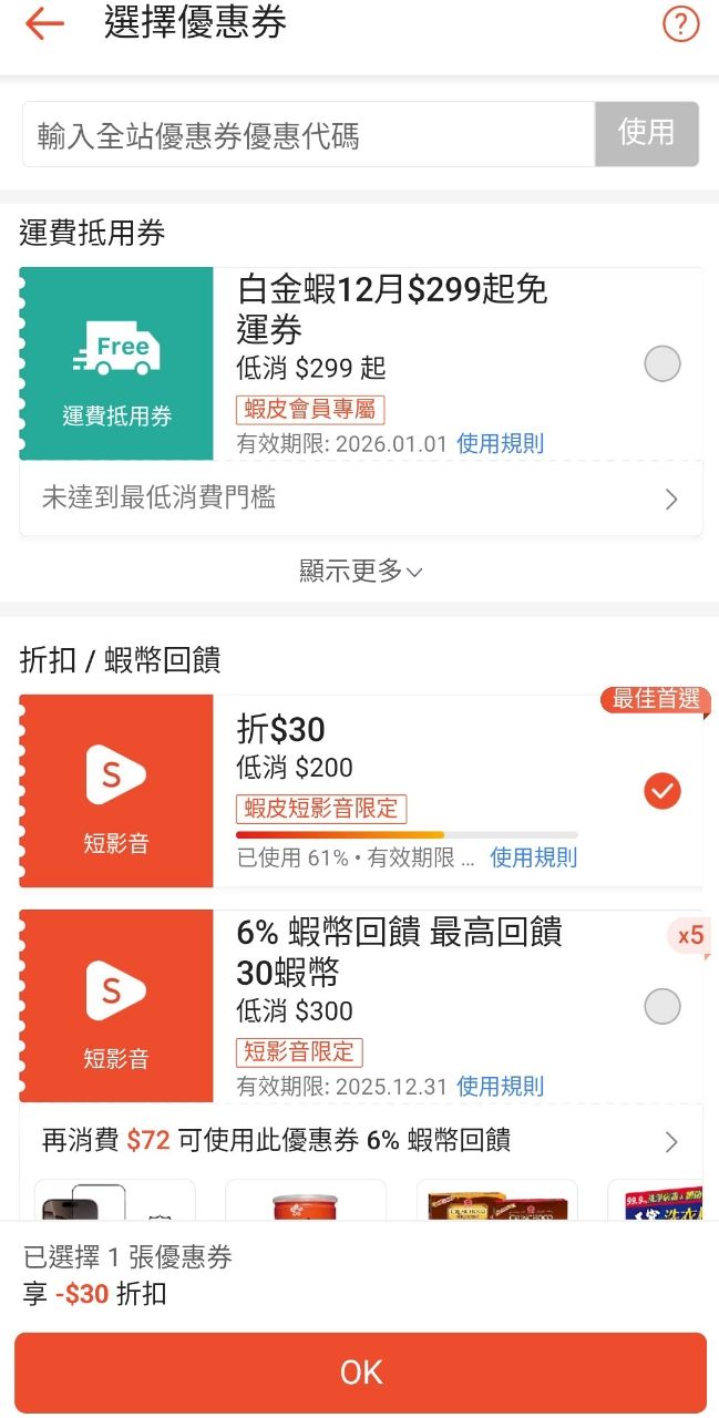 [情報] 蝦皮短影音200-30