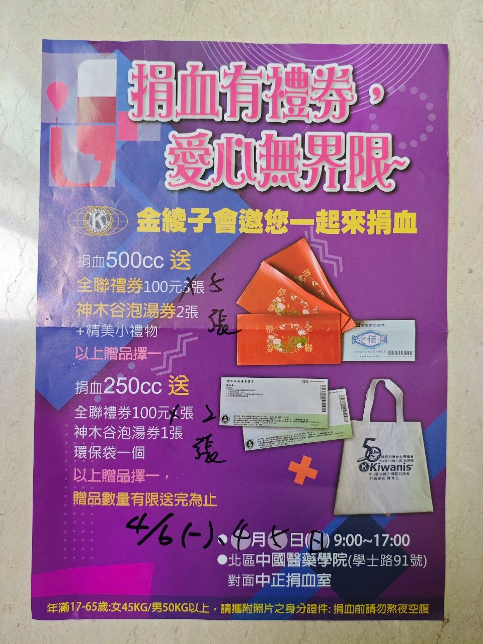資訊請自行查看捐血中心粉專,但有特殊紀念品會分享出來