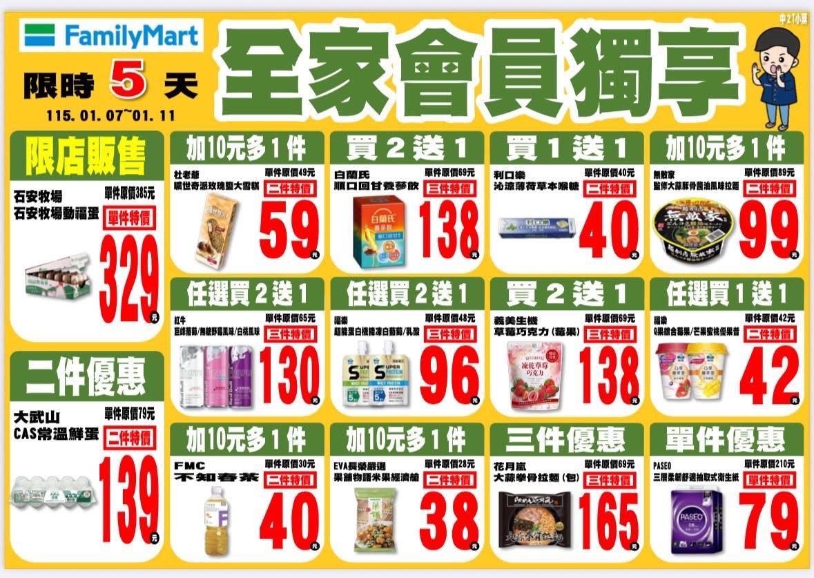 [情報] 全家會員獨享&康康五 1/07~1/11