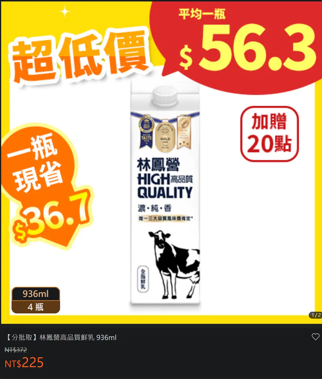 [情報] 全聯分批取 林鳳營鮮乳936ml*4 225