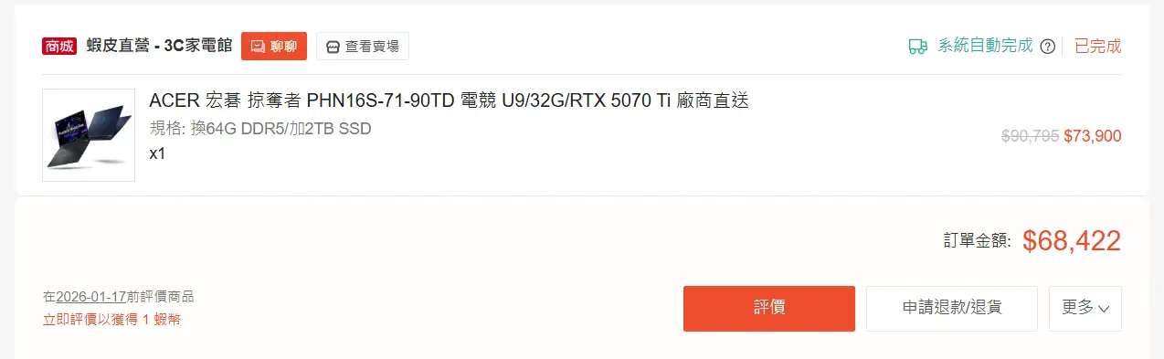 以目前的記憶體已翻3倍的行情來看,這款ACER筆電CP值算不錯