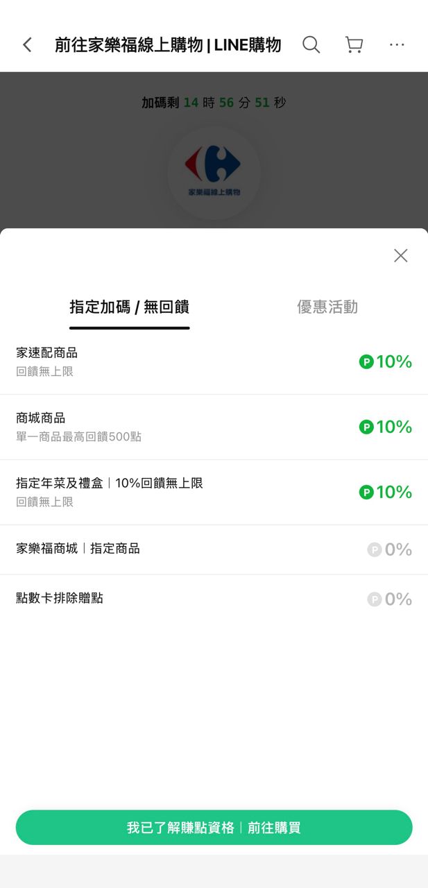 今天用LINE購物導購家樂福有10%回饋