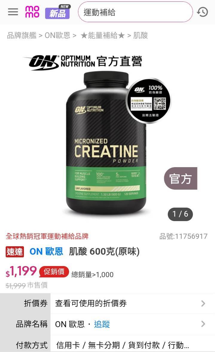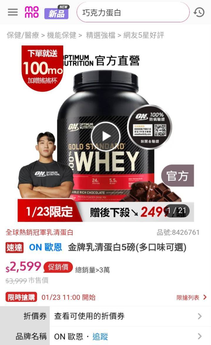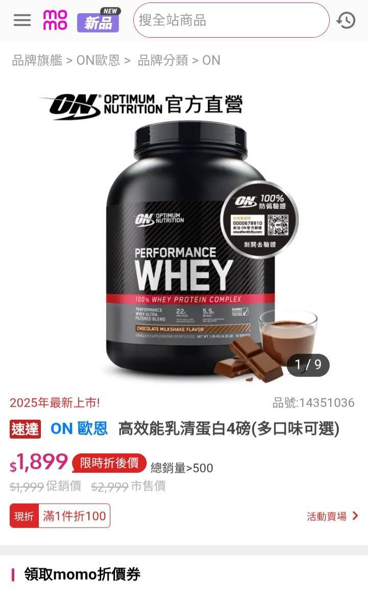 [情報] ON高蛋白momo單日優惠