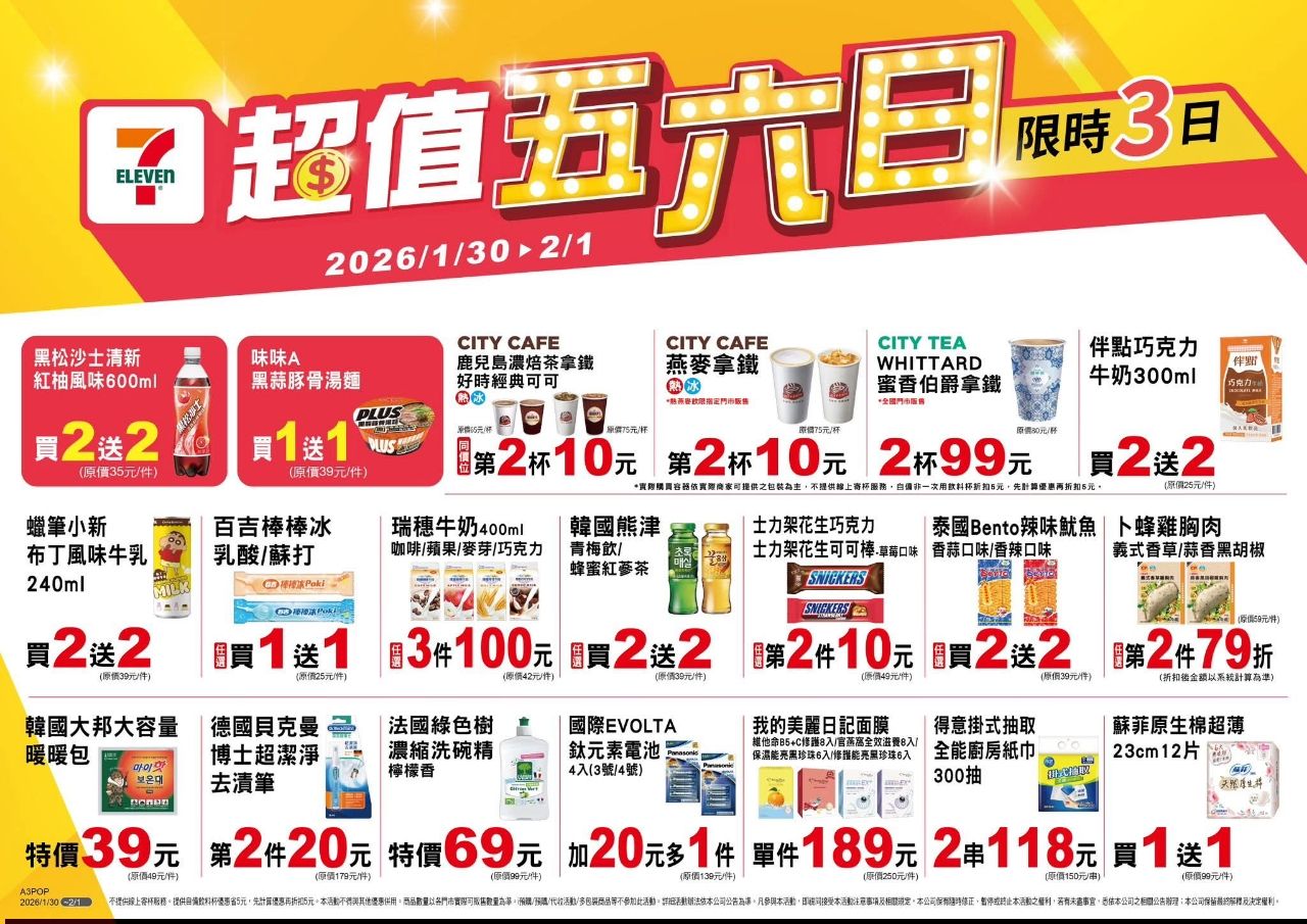 [情報] 7-11超值五六日 1/30~2/01