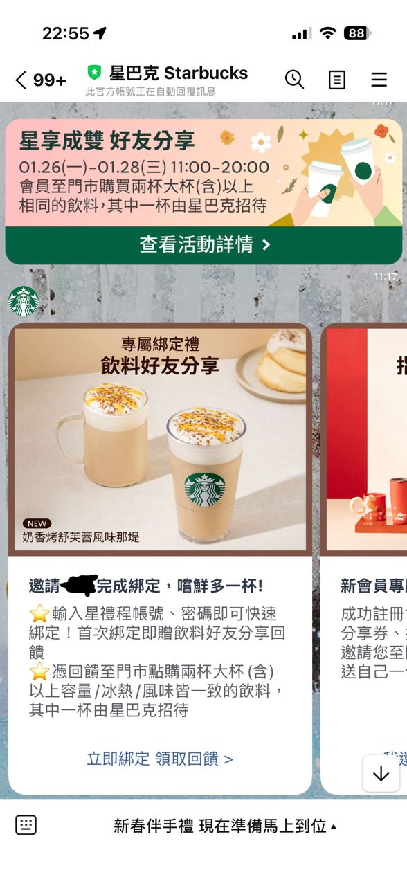 [情報] 星巴克官方line綁定星禮程買一送一
