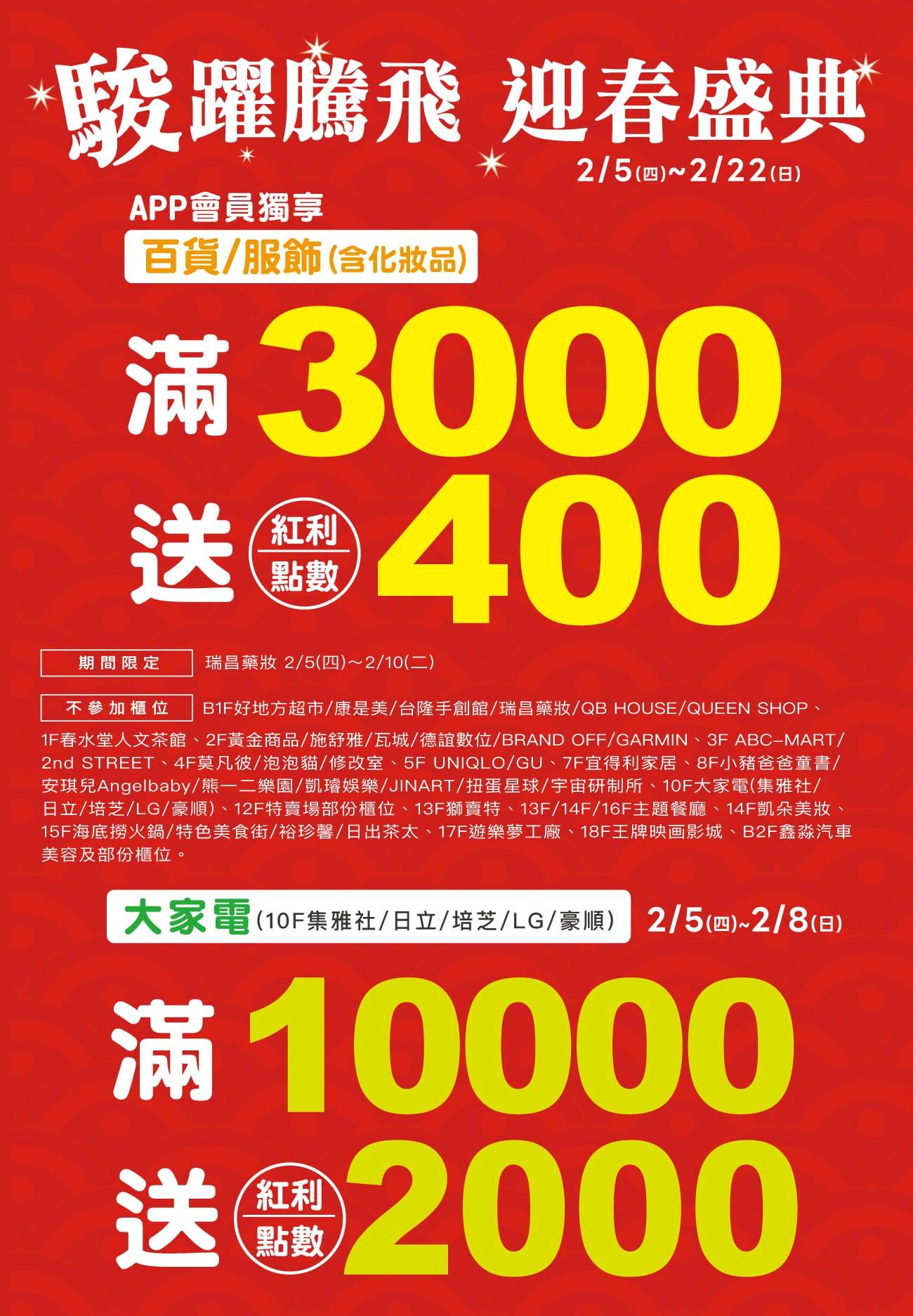 大家電(10F)|滿10000送2000點