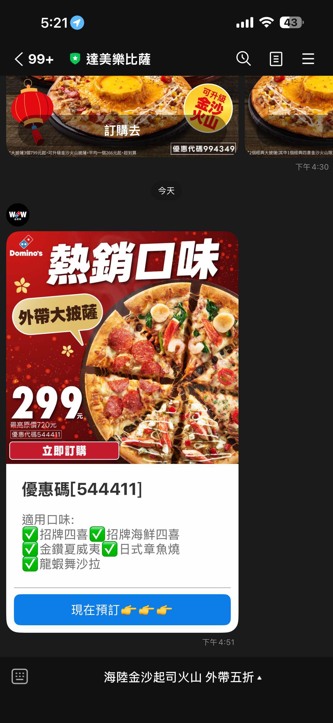 [情報] 達美樂披薩 熱銷口味外帶299