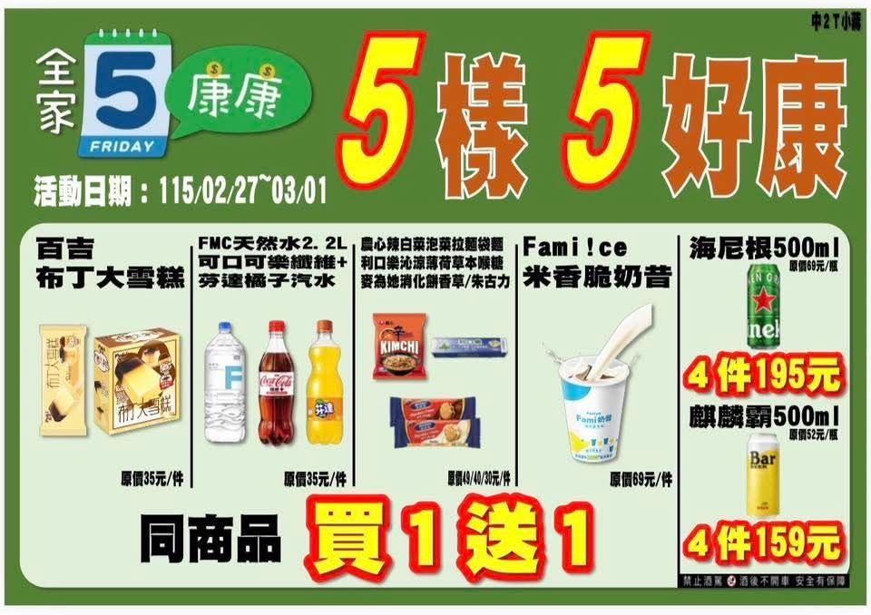 [情報] 全家會員獨享&康康五 2/23~3/01