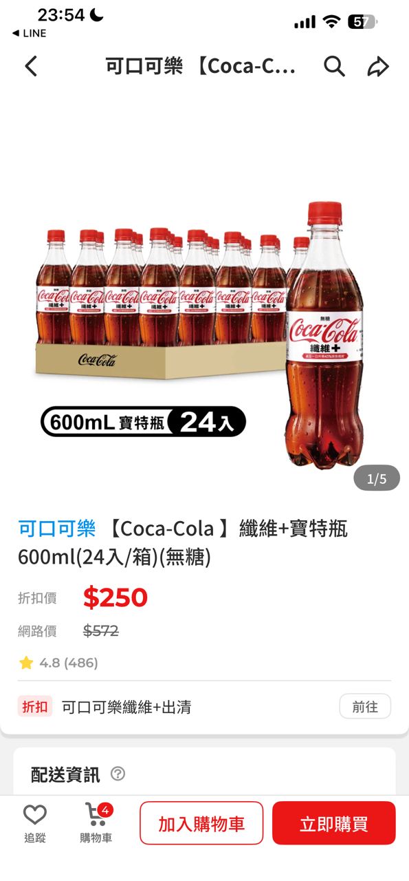 [情報] 可口可樂纖維+24瓶250