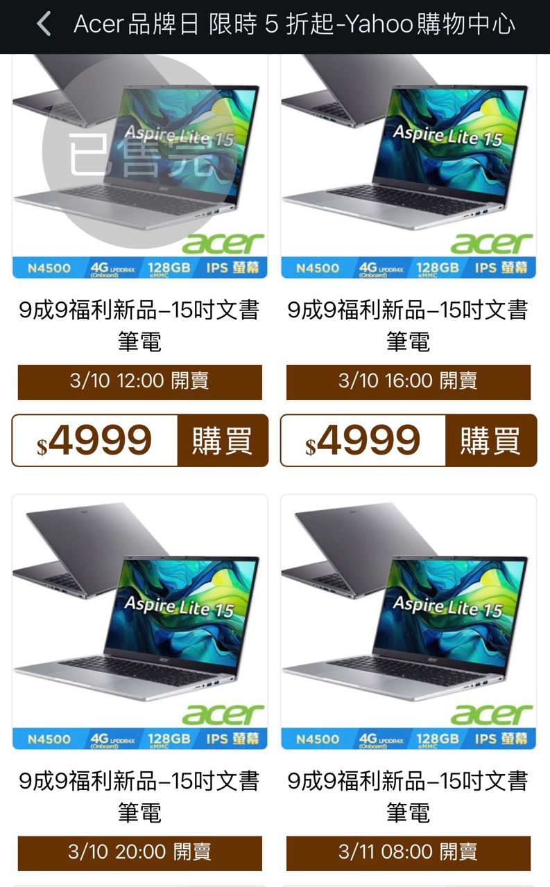 [情報] acer 9成9新Aspire Lite 15福利機$4990
