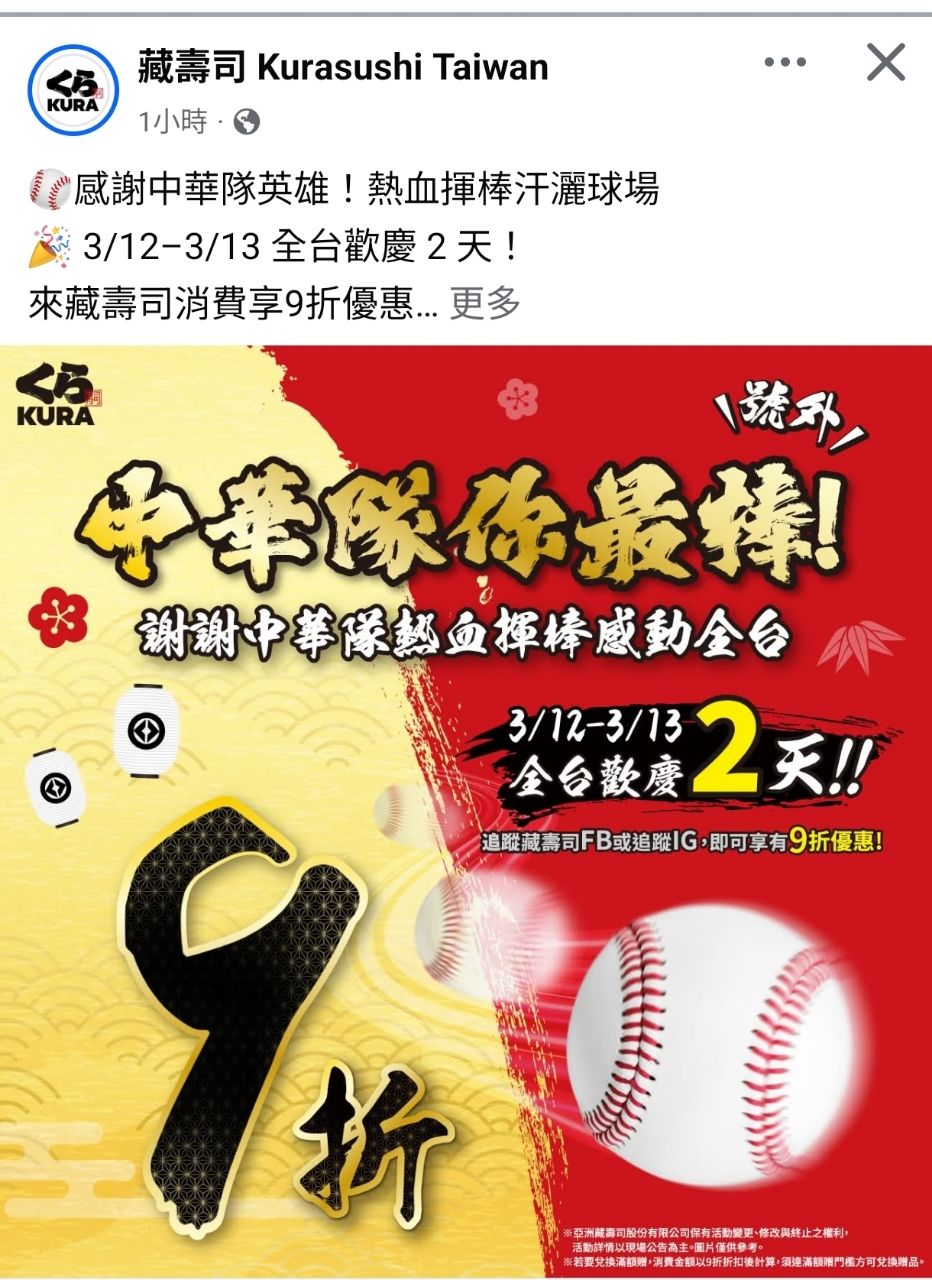 [情報] 感謝中華英雄 藏壽司3/12-139折