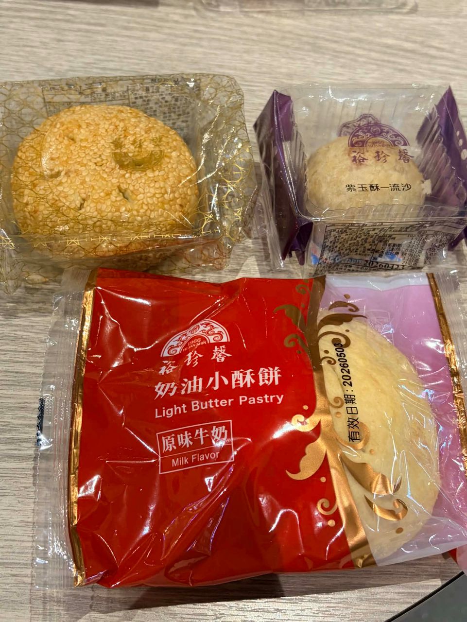 買了小奶油酥餅40-30,紫玉酥流沙55+四喜Q餅70-100付了35元