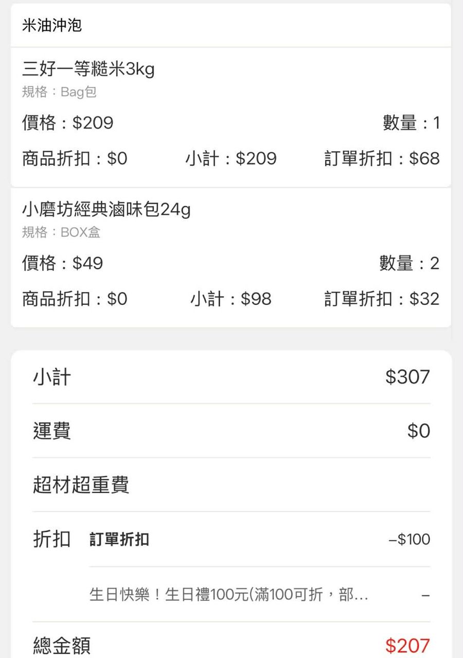 2.家樂福線上購物扣100,剛好吃的糙米沒了就買一買