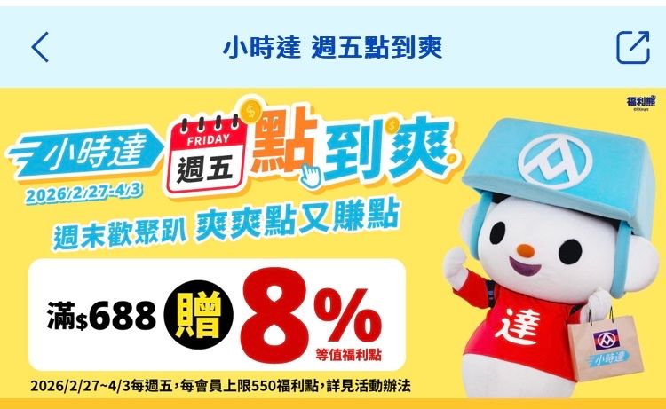 1.全館滿$800贈800福利點