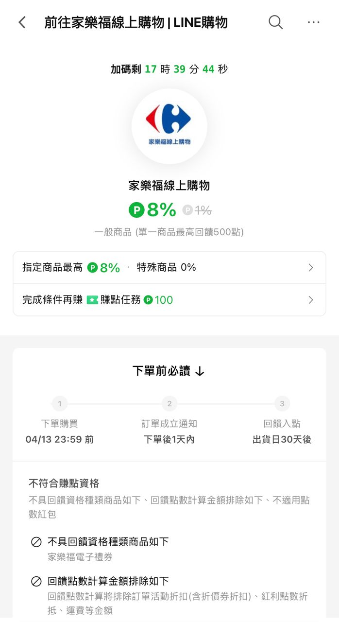 [情報] LINE導購家樂福線上購物8%回饋