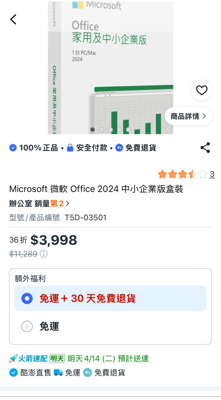 因為工作需要,剛剛原本要找過期的2021版來用比較便宜,一搜尋看到酷澎的中小企業版
