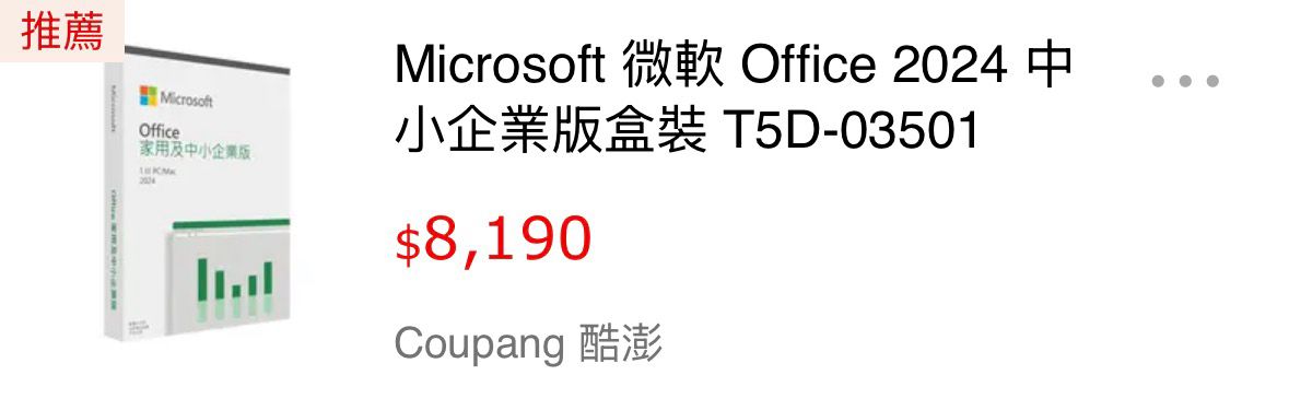 [情報] 酷澎 Office2024 中小企業版盒裝限時5折
