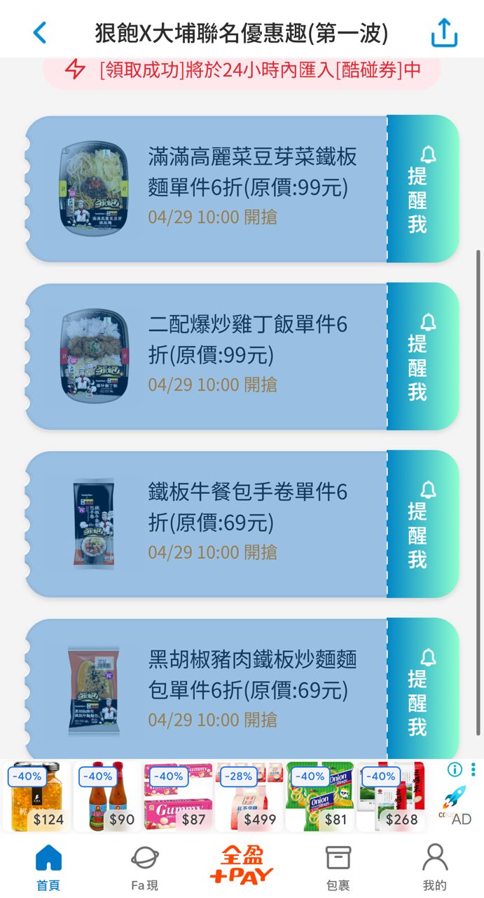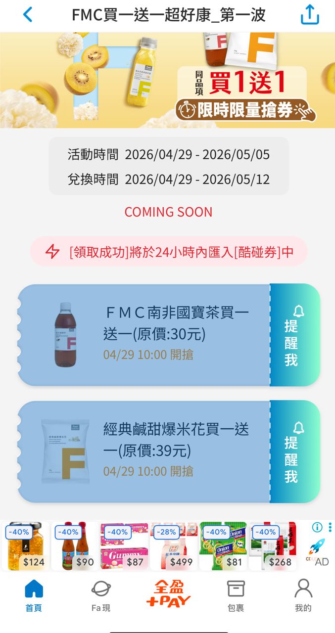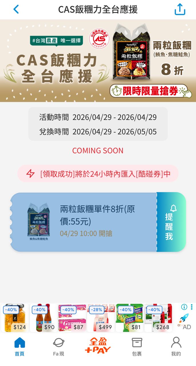 [情報] 全家優惠趣10點開領