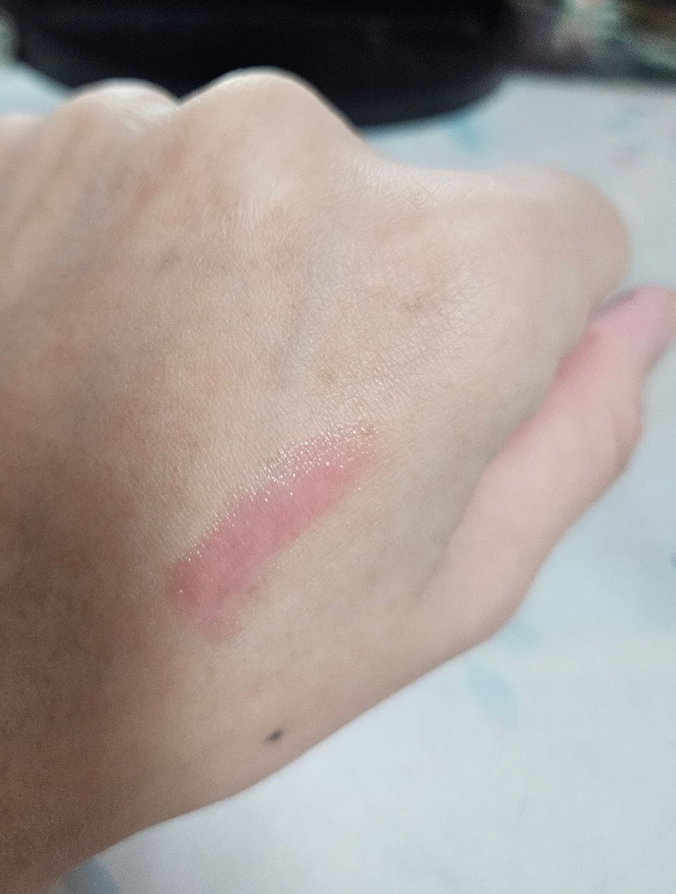 手背上的試色真的是很淺淡的粉紅色