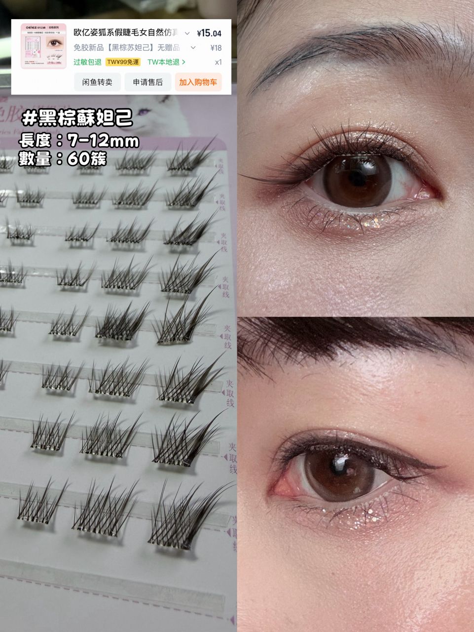 最後結論,免膠睫毛就是消耗品,買便宜的效果就很好了,只是可能一開始要先看一下自