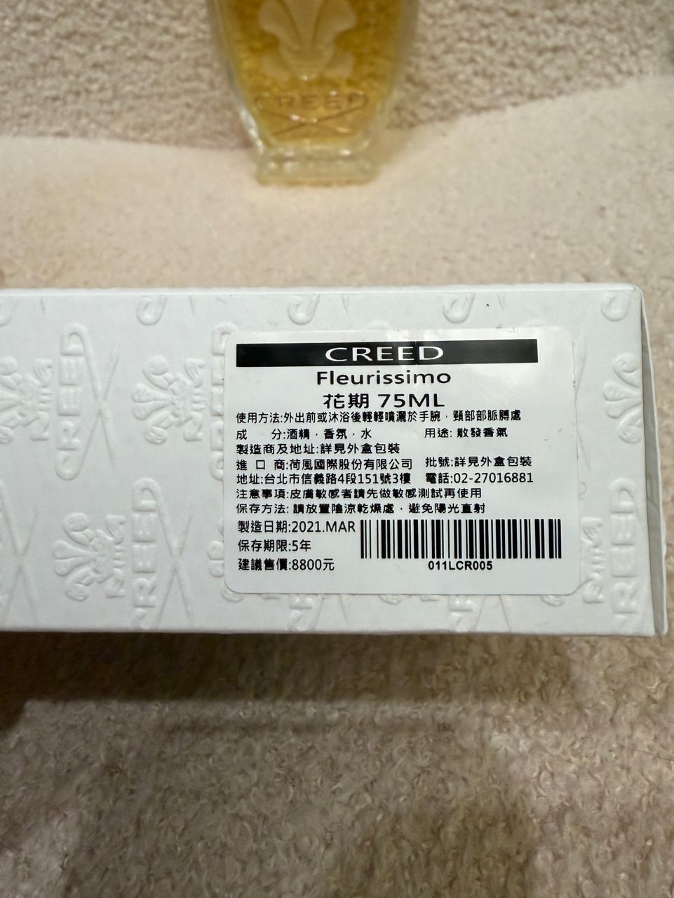 1.出售香水名稱:Creed Fleurissimo 花期 75ml
