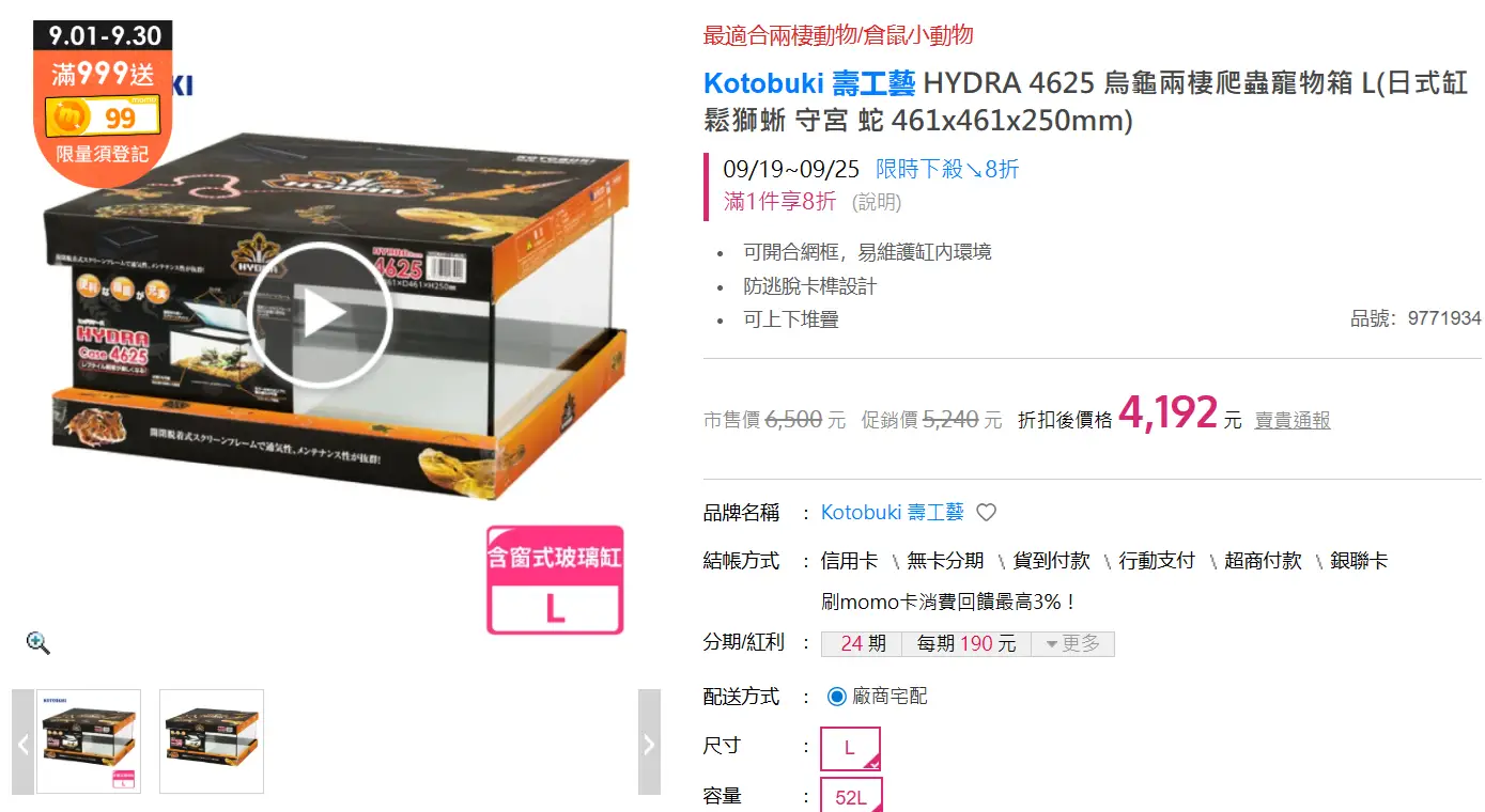 A.日本Kotobuki壽工藝HYDRA 爬蟲缸L號 1500元(原價6500元)