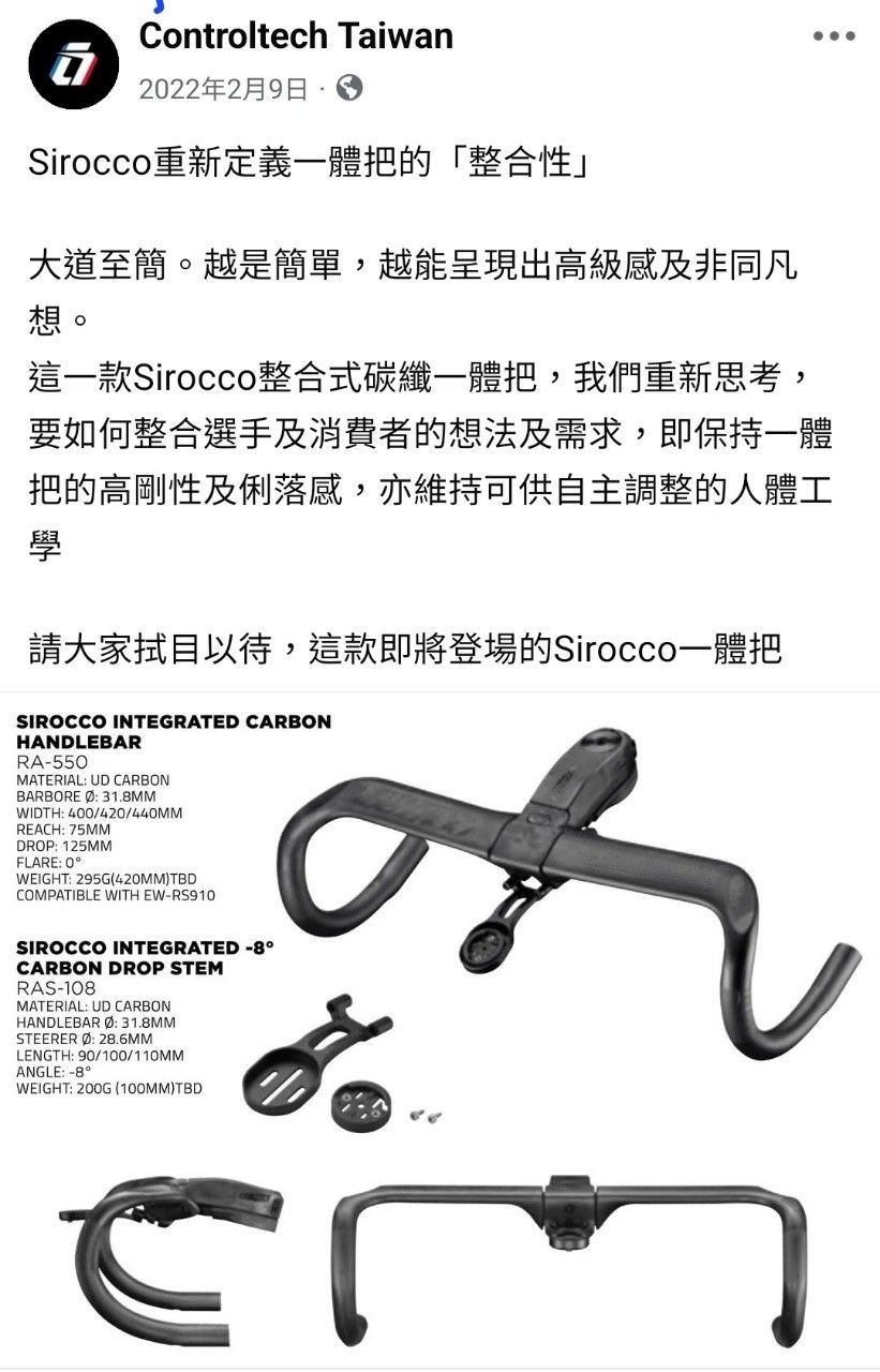 大廠Controltech碳纖維一體把 + 碼表座
