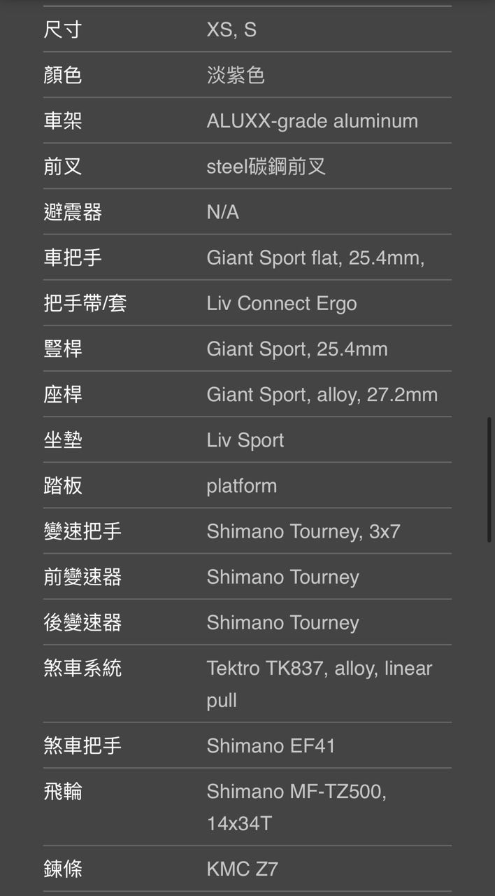 [出售] Liv平把自行車 xs