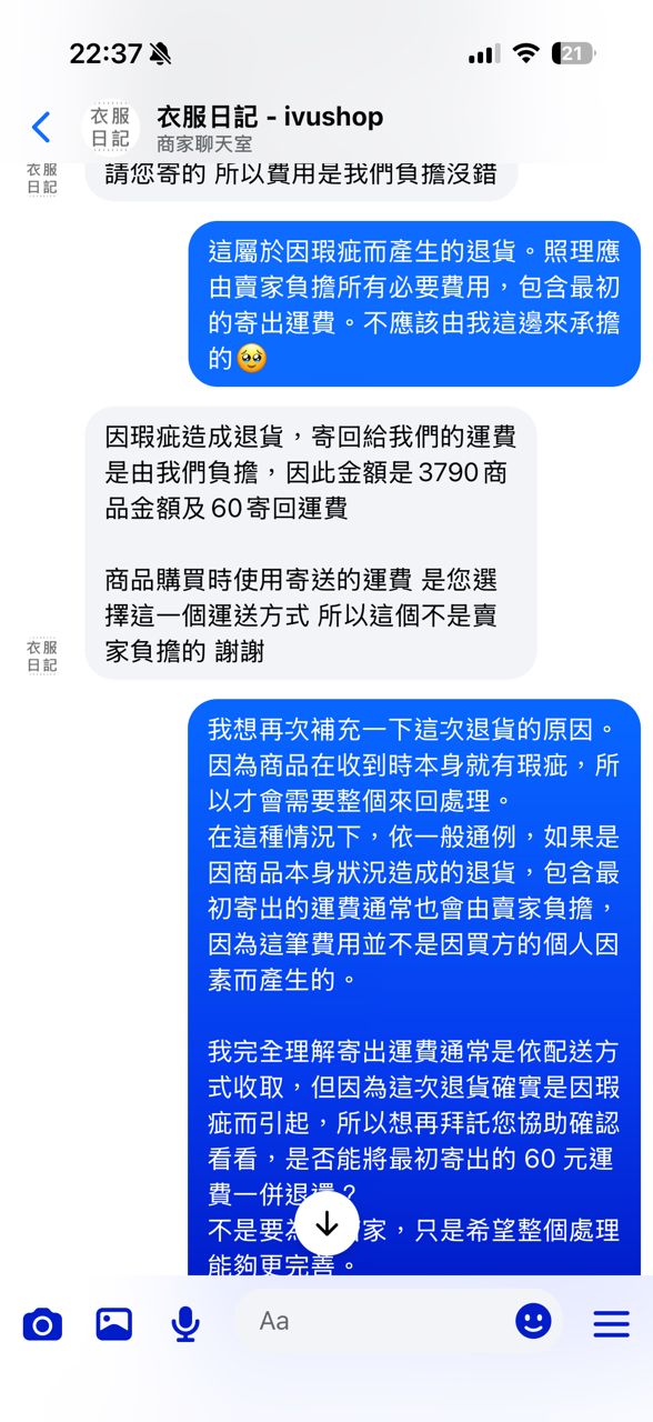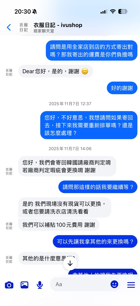 [問題] 衣服日記的售後服務及客服