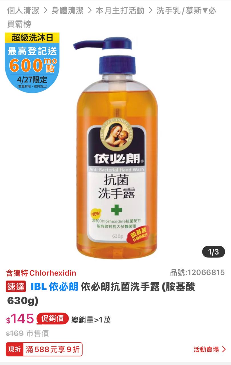 欲換物品:依必朗抗菌洗手露630g三瓶