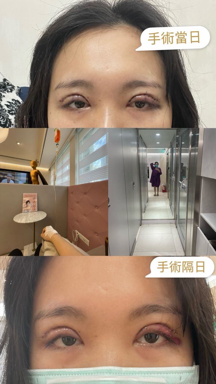 當下給了訂金就等待手術日(割雙眼皮+提眼瞼肌),術前停用抗凝血、活血的口服保健
