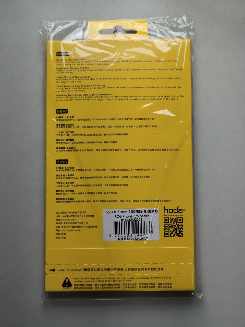 1. 商品名稱:hoda Asus ROG Phone 5/6代 0.21mm玻璃貼